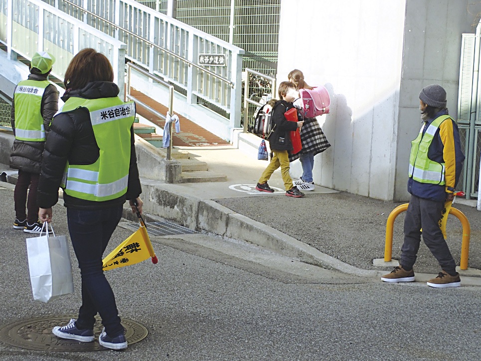 - 自治会「見守り活動」の第一歩として「売布小学校児童の下校時の見守り活動」を2018年12月21日(木)から始めました。場所は菰池の西側交差点付近と米谷歩道橋南側下の2個所で毎週木曜日(約30分)です。賛同いただいた18名で始めましたが、見守り場所や曜日の追加の要望もあり、更なる皆さんのご協力をお願いいたします。